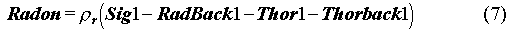 RadBack 1 = RadBack 2 = radon daughter contributions to signals,