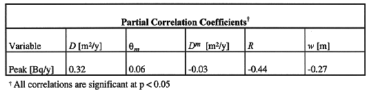 The reader should recall that the groundwater flow rate has been kept constant, but it is well known that it is the most important parameter. By keeping it constant, we have been able to enhance the relative sensitivity of the other parameters, thereby avoiding the need to use rank correlations in the sensitivity analysis.