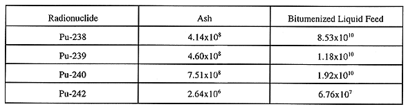 Table IV Plutonium Inventories (Bq) in 30 m3 of Ash and