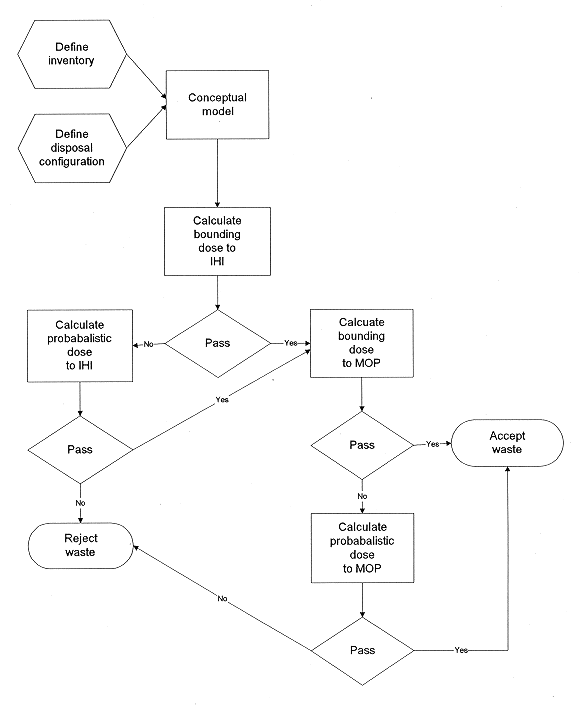 If deterministic performance objectives are met, no further consideration of the MOP is required. Should the bounding estimate of the dose to the MOP fail to meet the deterministic standard, a realistic probabilistic assessment will be carried out using standard Monte Carlo or LHS techniques.