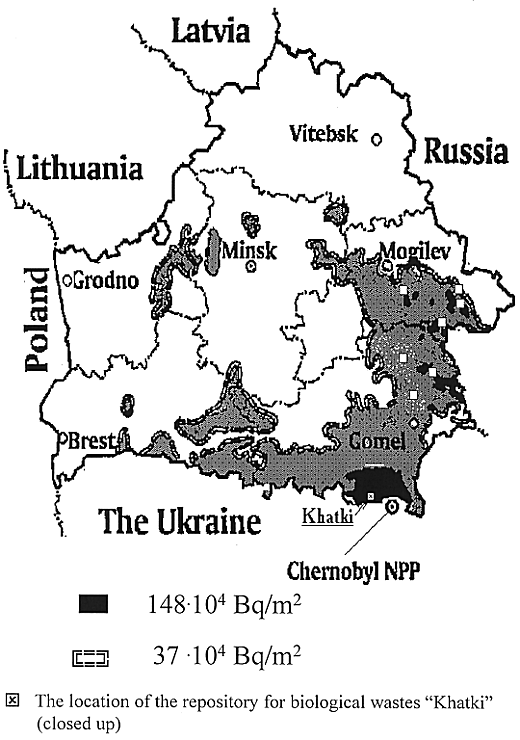 Near the border with the Ukraine (see Fig.1) a concrete repository was constructed where 3088 tons of contaminated meat were disposed of just after the accident. The total activity of the wastes in the repository is 745 GBq.