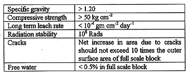 Table III Acceptance Criteria at NAPS for Polymerised Product