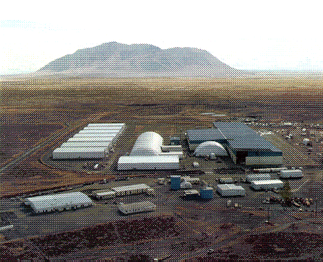 Radioactive Waste Management Complex (RWMC). The white structures on the left