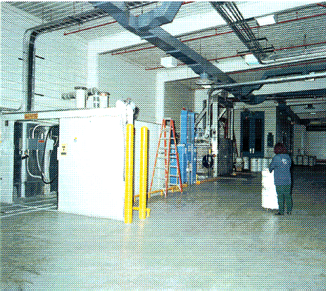 The SWEPP facility currently performs non-destructive assay and examinations of waste primarily contained in 55-gallon drums. The primary techniques being used in SWEPP to examine waste packages include visual examination for container integrity, and non-destructive radiographic and radioassay examinations for container contents. These examinations are performed using the real-time radiography (RTR) system, the passive/active neutron (PAN) assay, and gamma-ray spectrometer (GRS) system. The interior of the SWEPP facility is shown in Fig. 2. Surveys for contamination, radiation levels, and drum weight are also made at a container weigh station within the facility. Supporting and associated systems include the Drum Vent Facility and the TRU Package Transporter (TRUPACT) Loading Facility.