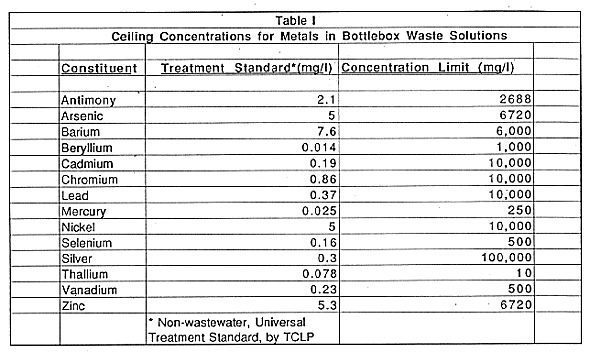 Table I Ceiling Concentrations for Metals in Bottlebox Waste