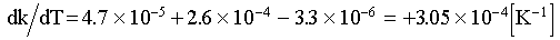 dk/dT = 2.58x10-4[K-1] (See above), it will take a