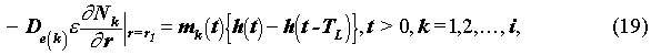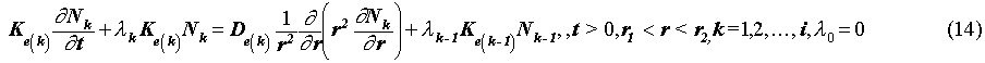 On the waste-solid surface, r = r1 (Fig. 1), if the solubility of radionuclide k is low enough, then precipitate k is created. The boundary condition is written as