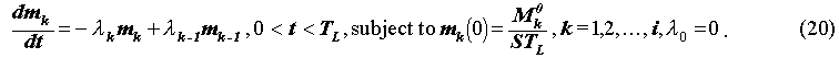 where mk(t)[mol/m2yr] is the congruent release rate of radionuclide k. TL [yr] is the leach time of the waste solid, which is the time period between the beginning and the end of the waste glass alteration. If the glass alters at a constant rate during the leach time TL, the congruent release rate,mk(t) , is obtained by solving: