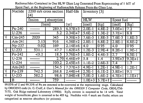 Table I Radionuclides Contained in One HLW Glass Log Generated From