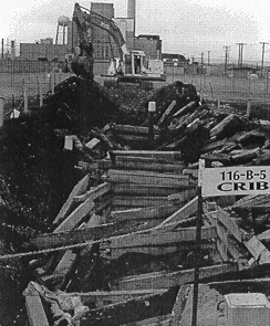 What was encountered during remediation fit the conceptual model; however, the levels of contamination encountered during remedial action did not exceed preliminary remediation goals. The crib structure was removed, and verification sampling was performed. Tritium levels were tested to allow for free release of the concrete rubble material. During the planning phase it was thought that there would be approximately 300 m3 of waste generated during remedial action. There were no waste materials generated and excavated material was used for backfill. Figures 1a and 1b show the exposed crib structure and completed site excavation.