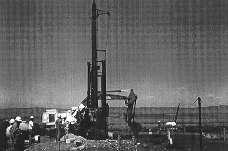 The use of the Sonic Cone Penetrometer with gamma logging proved to be successful in obtaining advanced characterization data for all of the demonstration sites. For example, on the 116-B-4 site initial excavation revealed that the contaminated soils were not completely excavated. This site was near the historical B Reactor. Use of the sonic cone penetrometer provided boundary data which showed the contamination stopped 4.6 m (15 ft) north, south and east of the initial excavation. However, contamination did extend west near the B Reactor Building. This provided the information necessary for the stakeholders to decide on site boundaries for determination of site remediation of the 116-B-4 site. Figure 4 shows the sonic drill rig at the 116-B-5 site. This tool was used at the 116-B-5 and the 116-C-1 sites and provided advanced data for planning the excavations. In addition, this technology was also used for the Group 1 sites remediation planning for the 100-B/C Area. The Group 1 sites contain approximately 300,000 LCY of radioactive contaminated soils.