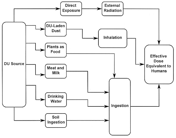 in the RESRAD code. Arrows indicate possible transfer of DU (after Yu et al,