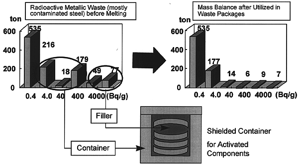 Also balance of supply/demand relation should be a primary concern for establishing effective volume reduction and the safe management of the waste. For recycling of radioactive metal, waste containers by casting and steel structure bars by a combination of casting and milling, are the candidate products to be used in nuclear facilities.