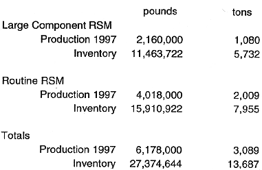 Routine generation of RSM from reactor operations is estimated to be over 2,000 tons during 1997. This represents about 4 years of stored RSM already produced.