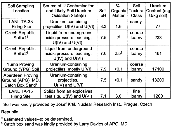 These studies were conducted with soils which were contaminated with U by different processes. These processes are likely to influence the efficiency of the leaching agents. It is important to know the source of soil contamination by U, the oxidation state of the soil U and the soil properties.