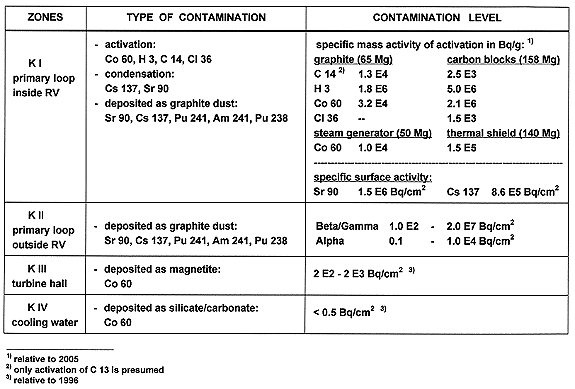 From the aspect of existing contamination, the AVR reactor can be divided into 4 zones (Fig. 1). The 4 contamination zones differ in their